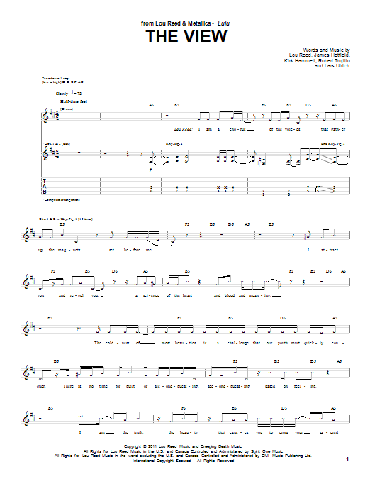 Download or print Lou Reed & Metallica The View sheet music, chords and digital score arranged for Guitar Tab. This Pop score includes 7 page(s).