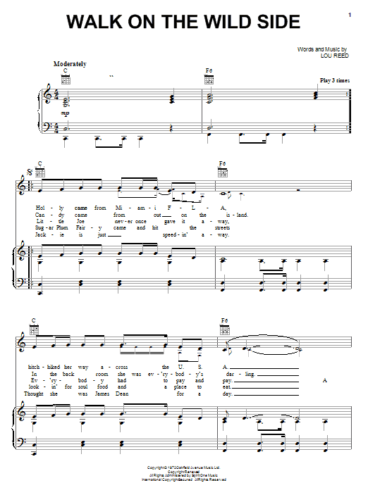 Download or print Lou Reed Walk On The Wild Side sheet music, chords and digital score arranged for Guitar Tab (Single Guitar). This Pop score includes 8 page(s).