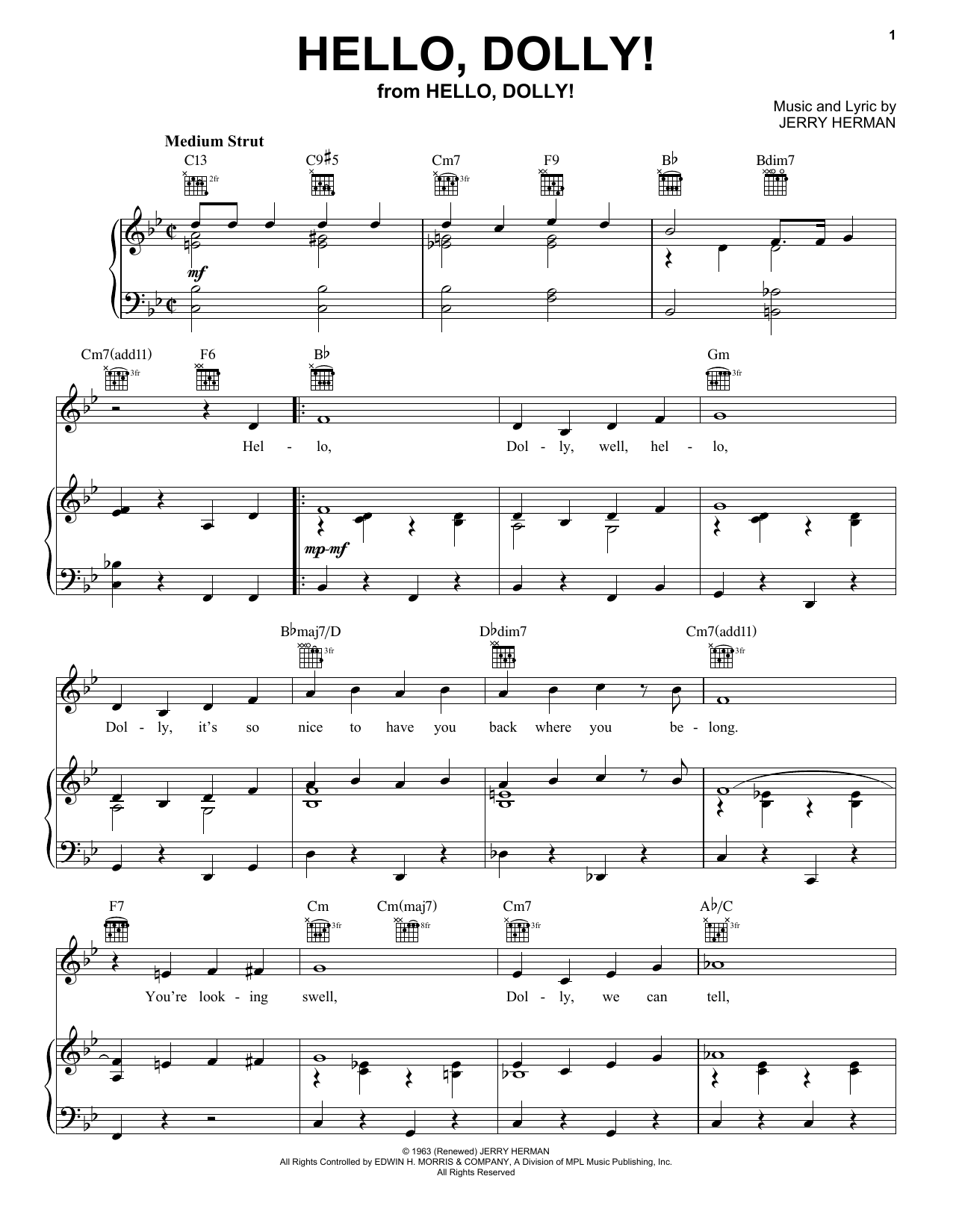 Download or print Jerry Herman Hello, Dolly! sheet music, chords and digital score arranged for Accordion. This Musical/Show score includes 3 page(s).