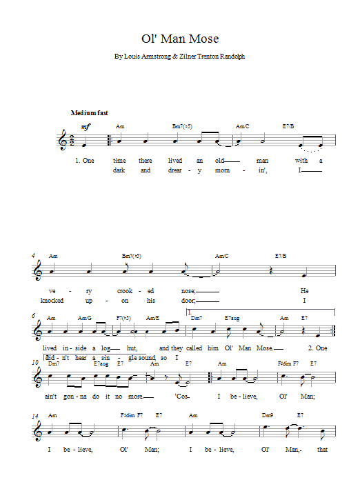 Download or print Louis Armstrong Ol Man Mose sheet music, chords and digital score arranged for Lead Sheet / Fake Book. This Jazz score includes 2 page(s).