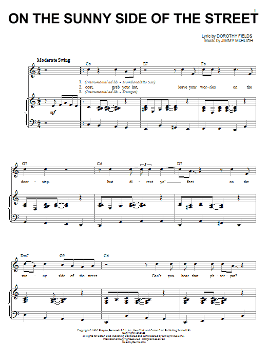 Quick facts On The Sunny Side Of The Street about digital sheet music