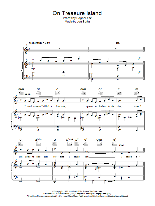 Download or print Louis Armstrong On Treasure Island sheet music, chords and digital score arranged for Piano, Vocal & Guitar Chords. This Standards score includes 4 page(s).