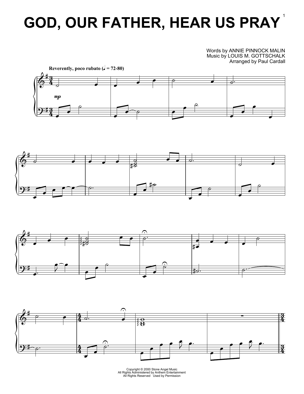 Download or print Louis M. Gottschalk God, Our Father, Hear Us Pray (arr. Paul Cardall) sheet music, chords and digital score arranged for Piano Solo. This Gospel score includes 3 page(s).