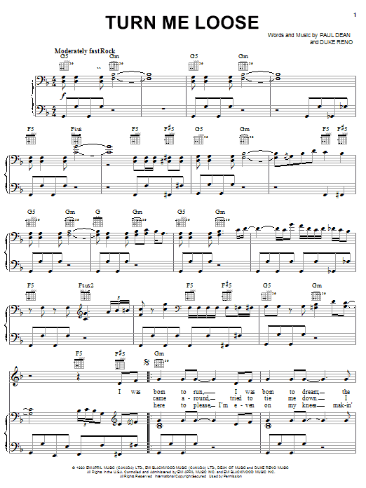 Download or print Loverboy Turn Me Loose sheet music, chords and digital score arranged for Super Easy Piano. This Rock score includes 2 page(s).