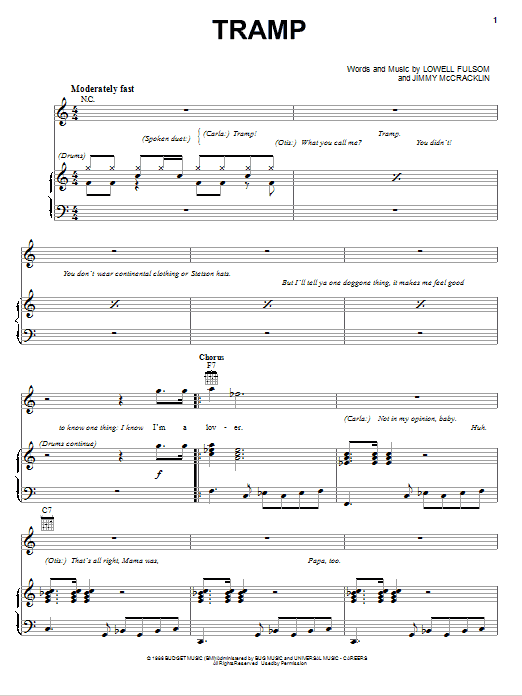 Download or print Lowell Fulsom Tramp sheet music, chords and digital score arranged for Piano, Vocal & Guitar Chords (Right-Hand Melody). This Pop score includes 3 page(s).