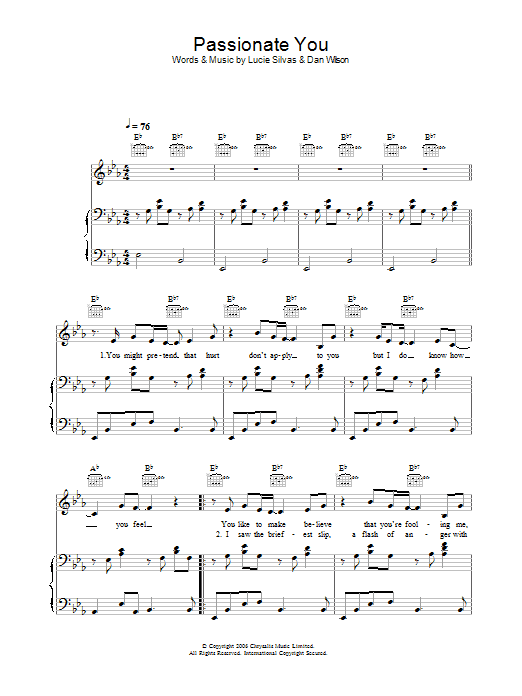Download or print Lucie Silvas Passionate You sheet music, chords and digital score arranged for Piano, Vocal & Guitar Chords. This Pop score includes 4 page(s).
