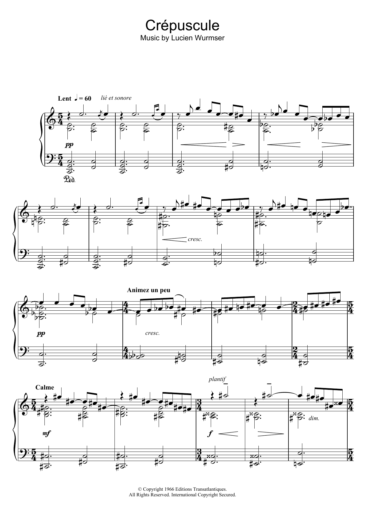 Download or print Lucien Wurmser Crepuscule sheet music, chords and digital score arranged for Piano Solo. This Classical score includes 2 page(s).