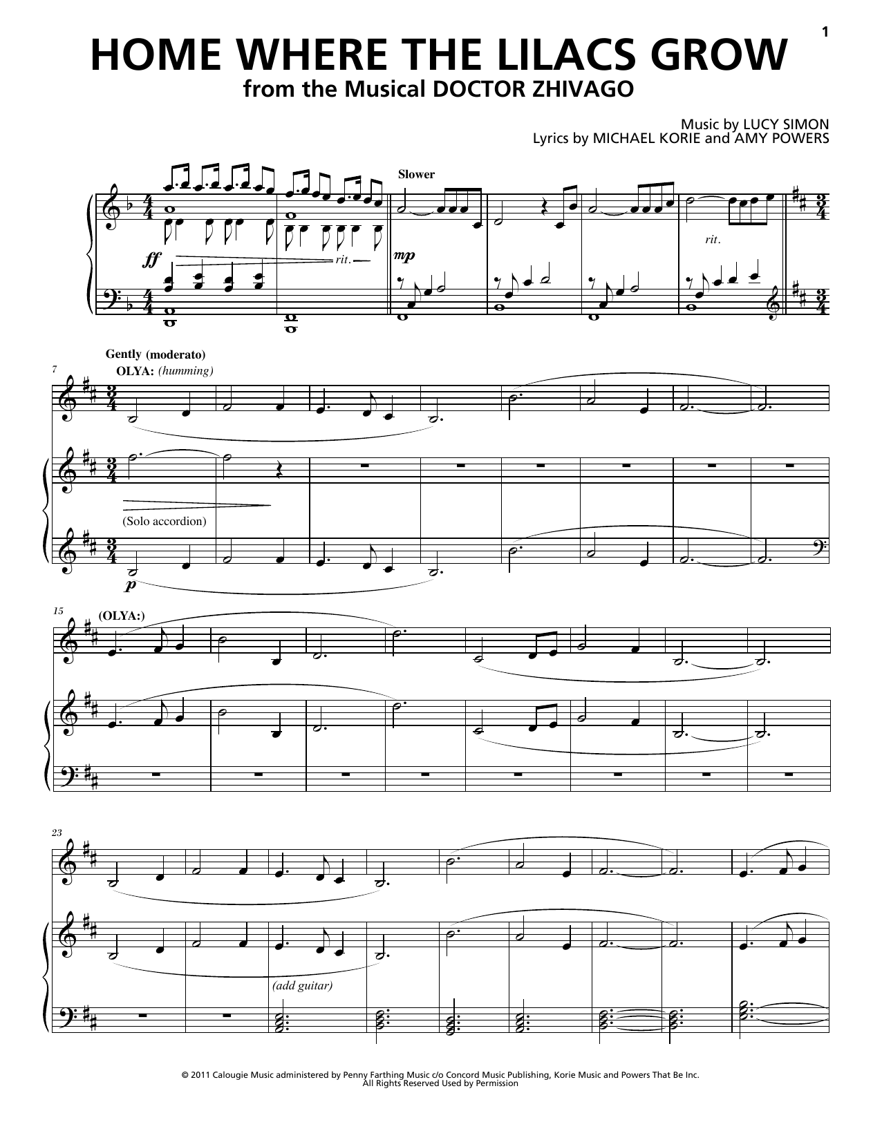 Download or print Lucy Simon, Michael Korie & Amy Powers Home Where The Lilacs Grow sheet music, chords and digital score arranged for Piano & Vocal. This Musical/Show score includes 8 page(s).