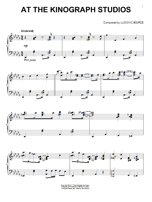 Download or print Ludovic Bource At The Kinograph Studios sheet music, chords and digital score arranged for Piano Solo. This Pop score includes 4 page(s).