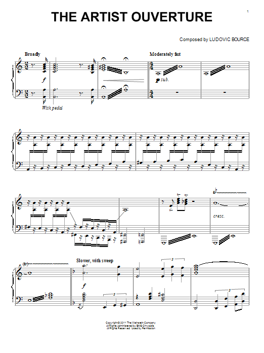 Download or print Ludovic Bource The Artist Ouverture sheet music, chords and digital score arranged for Easy Piano. This Pop score includes 3 page(s).