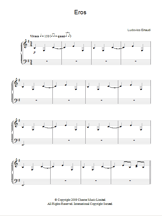 Download or print Ludovico Einaudi Eros sheet music, chords and digital score arranged for Piano Solo. This Classical score includes 15 page(s).