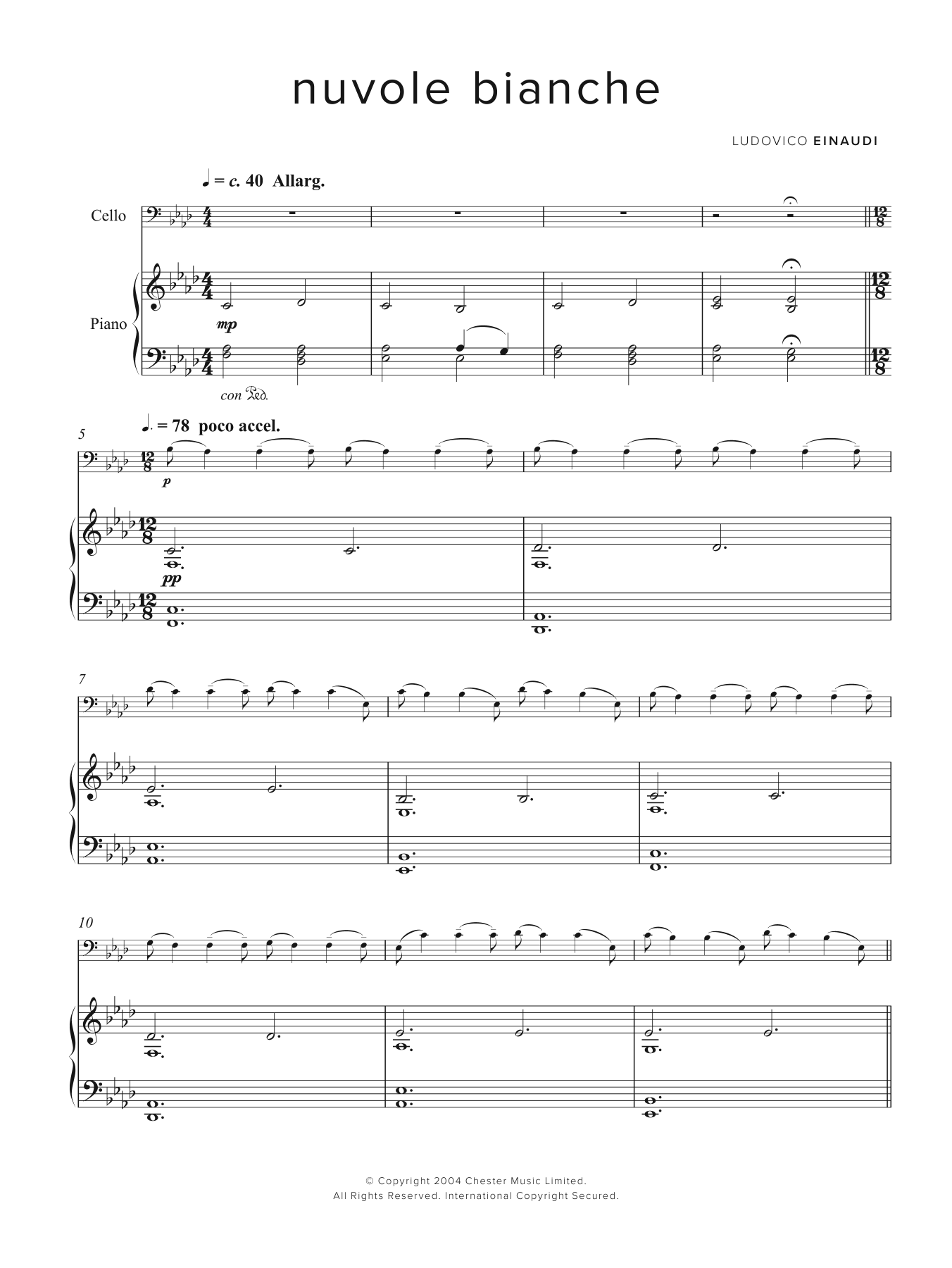 Download or print Ludovico Einaudi Nuvole Bianche sheet music, chords and digital score arranged for Piano Solo. This New Age score includes 6 page(s).
