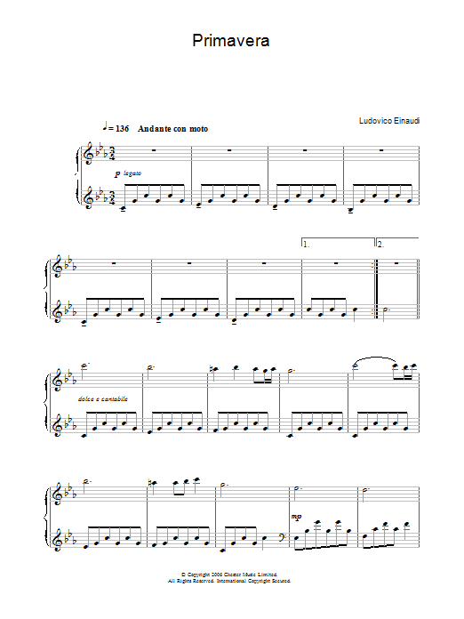 Download or print Ludovico Einaudi Primavera sheet music, chords and digital score arranged for Piano Solo. This Classical score includes 7 page(s).