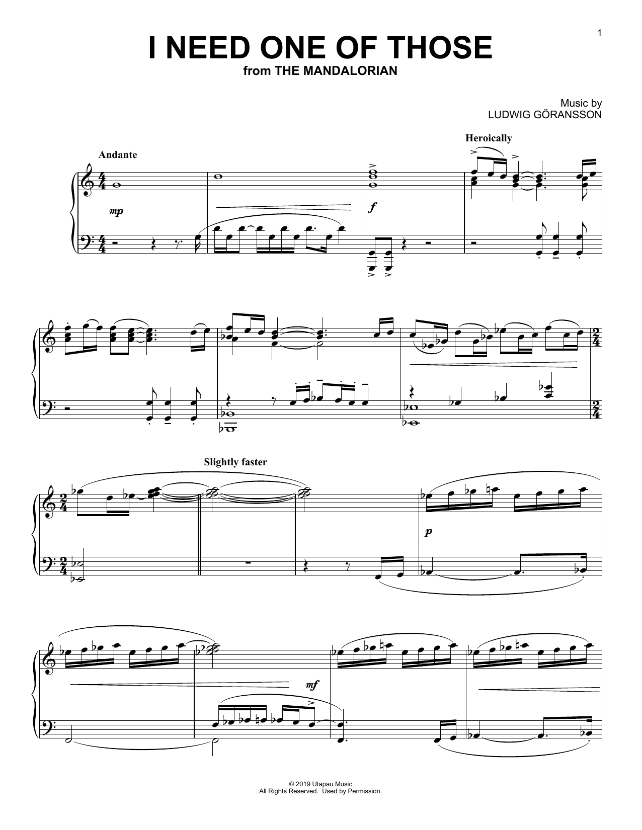 Download or print Ludwig Göransson I Need One Of Those (from Star Wars: The Mandalorian) sheet music, chords and digital score arranged for Piano Solo. This Film/TV score includes 3 page(s).