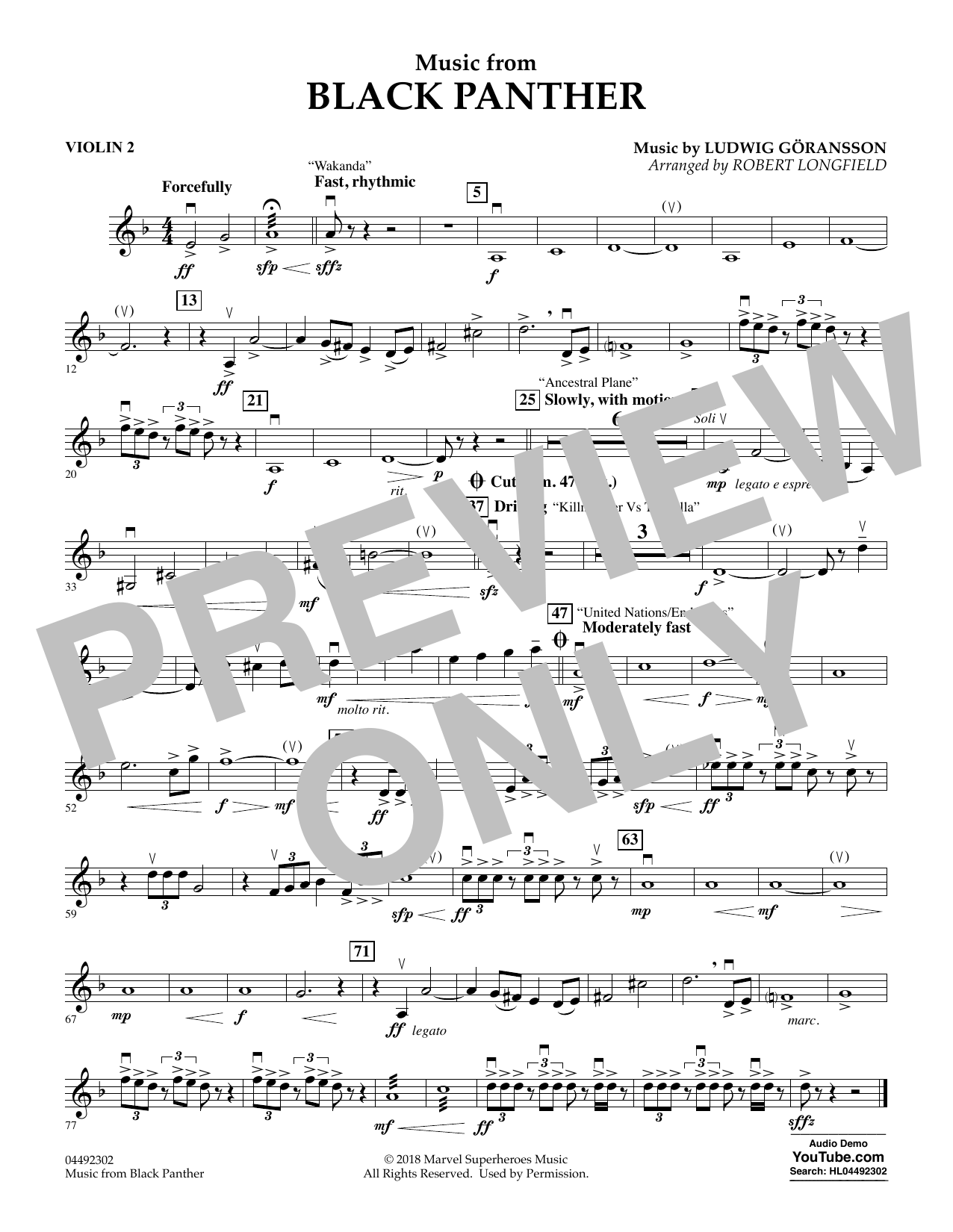 Quick facts Music from Black Panther (arr. Robert Longfield) - Violin 2 about digital sheet music