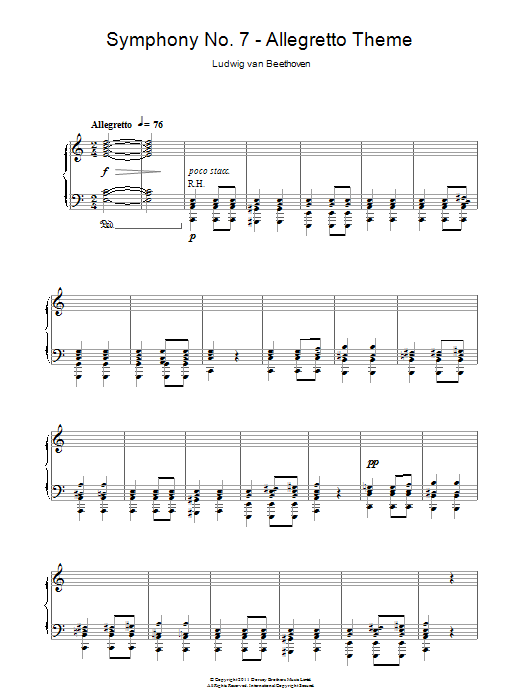 Download or print Ludwig van Beethoven 2nd Movement Theme - Allegretto (from Symphony No.7) sheet music, chords and digital score arranged for Piano Solo. This Classical score includes 3 page(s).