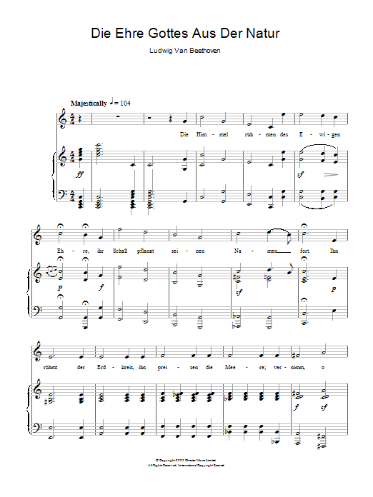 Download or print Ludwig van Beethoven Die Ehre Gottes Aus Der Natur Op.48 No.4 sheet music, chords and digital score arranged for Piano & Vocal. This Classical score includes 3 page(s).