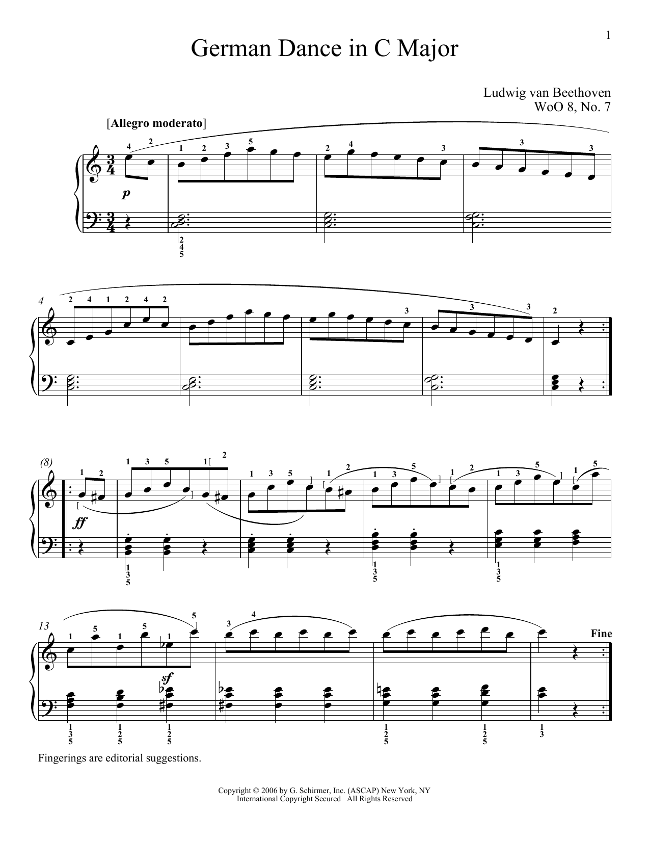 Quick facts German Dance In C Major, WoO 8, No. 7 about digital sheet music