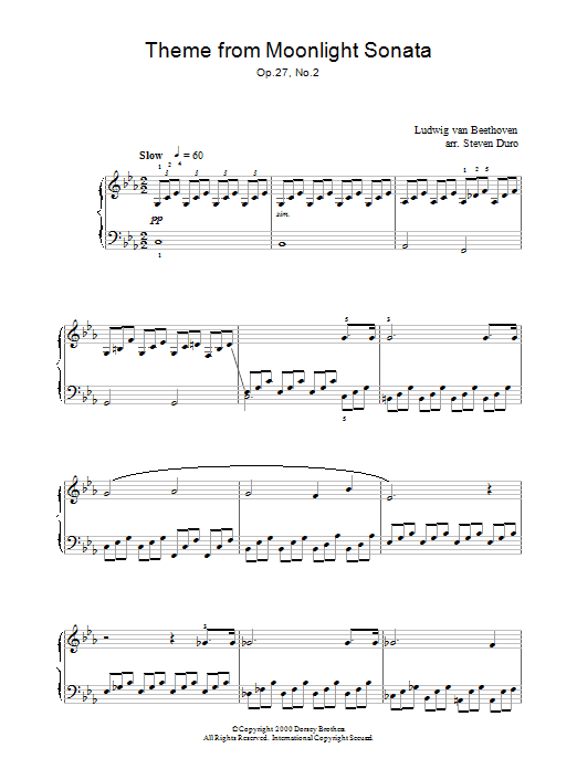 Quick facts Piano Sonata No. 14 In C# Minor (Moonlight) Op. 27 No. 2 First Movement Theme about digital sheet music