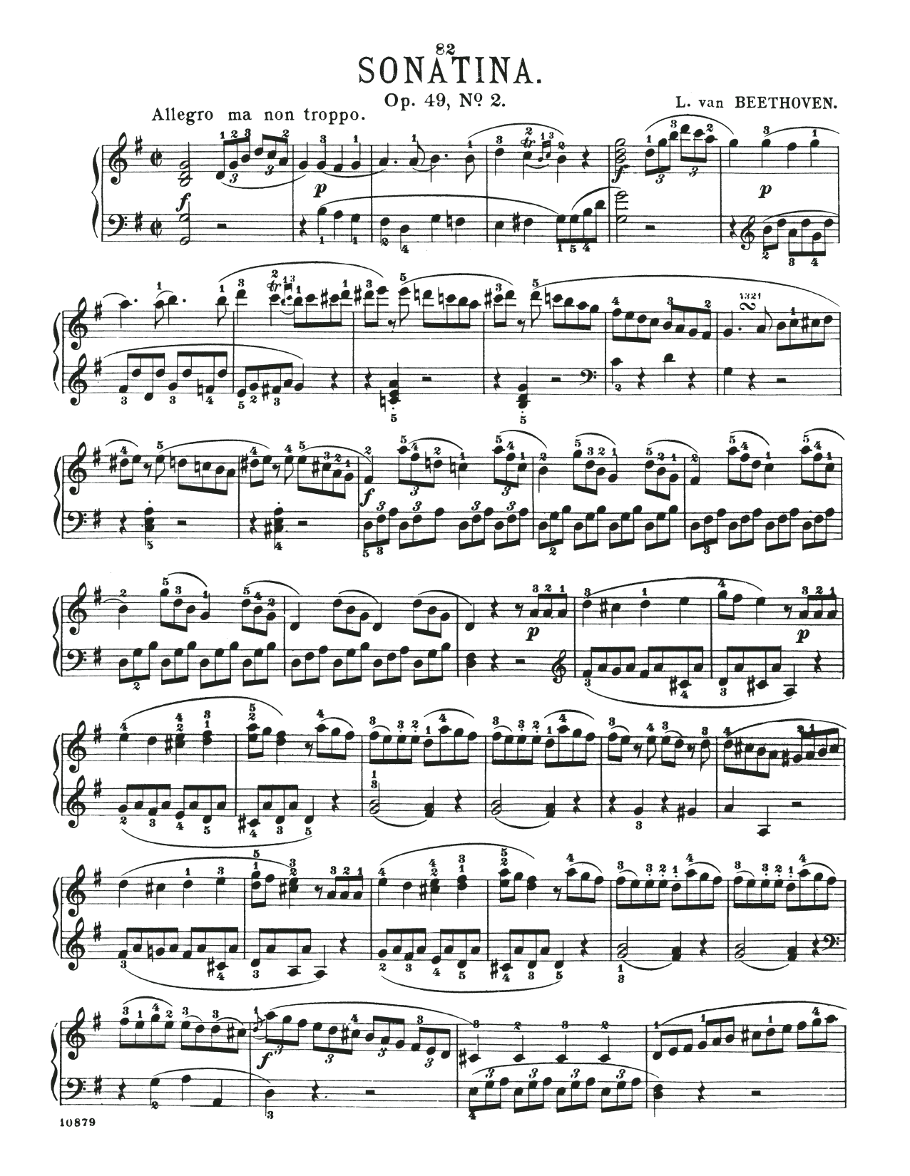 Download or print Ludwig van Beethoven Sonatina In G Major, Op. 49, No. 2 sheet music, chords and digital score arranged for Piano Solo. This Classical score includes 6 page(s).