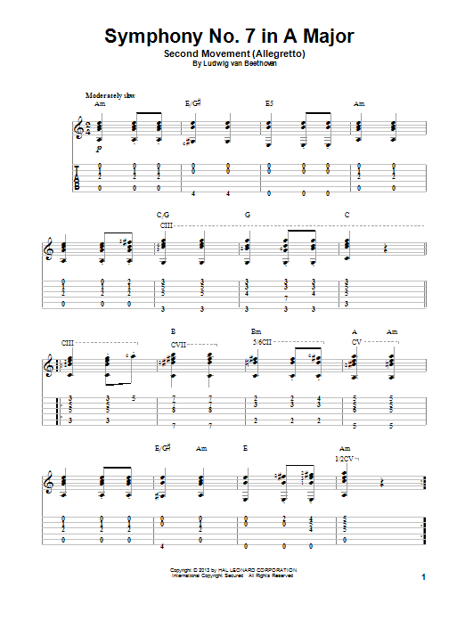 Download or print Ludwig van Beethoven Allegretto from Symphony No. 7 in A major (Second Movement) sheet music, chords and digital score arranged for Easy Piano. This Classical score includes 5 page(s).