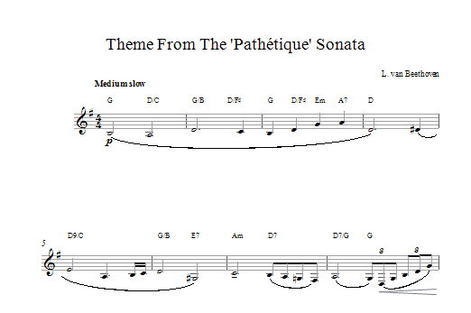 Download or print Ludwig van Beethoven Theme from Pathetique Sonata sheet music, chords and digital score arranged for Clarinet Solo. This Classical score includes 2 page(s).