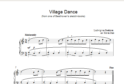 Download or print Ludwig van Beethoven Village Dance sheet music, chords and digital score arranged for Piano Solo. This Classical score includes 2 page(s).