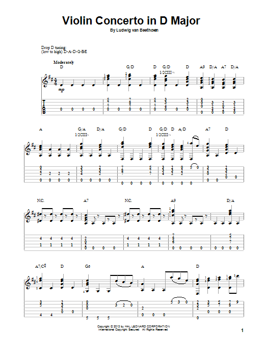 Download or print Ludwig van Beethoven Violin Concerto In D Major sheet music, chords and digital score arranged for Solo Guitar. This Classical score includes 2 page(s).
