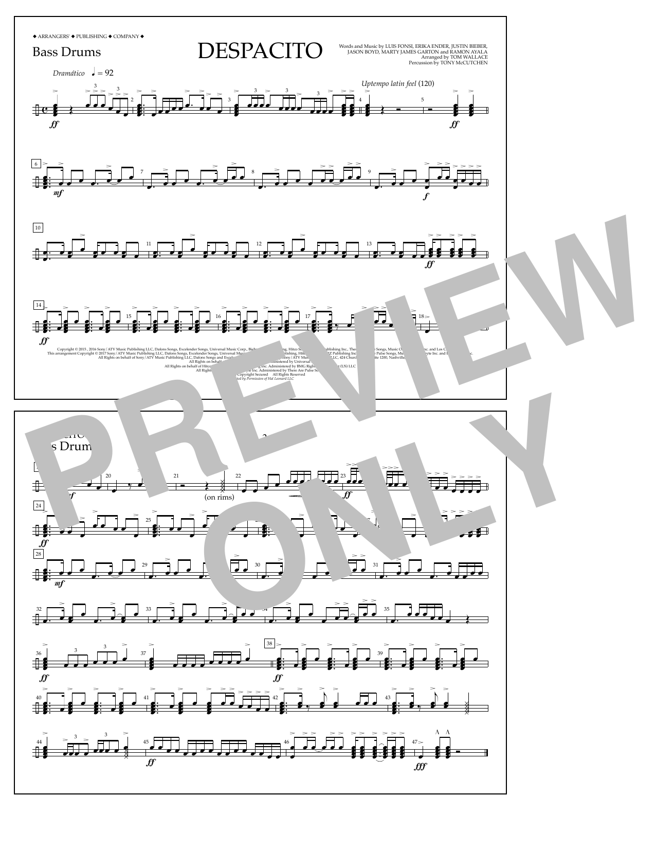 Quick facts Despacito (arr. Tom Wallace) - Bass Drums about digital sheet music