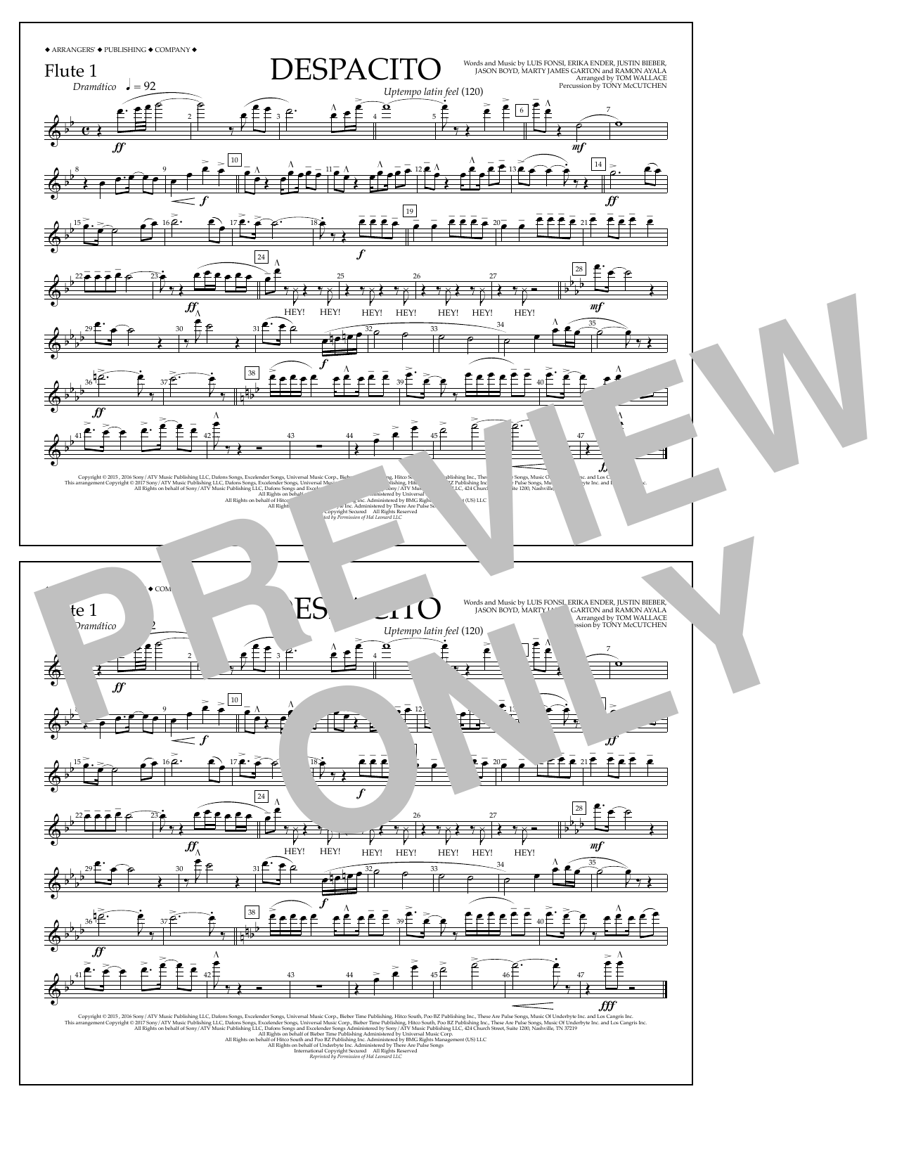 Download or print Luis Fonsi & Daddy Yankee feat. Justin Bieber Despacito (arr. Tom Wallace) - Flute 1 sheet music, chords and digital score arranged for Marching Band. This Pop score includes 1 page(s).