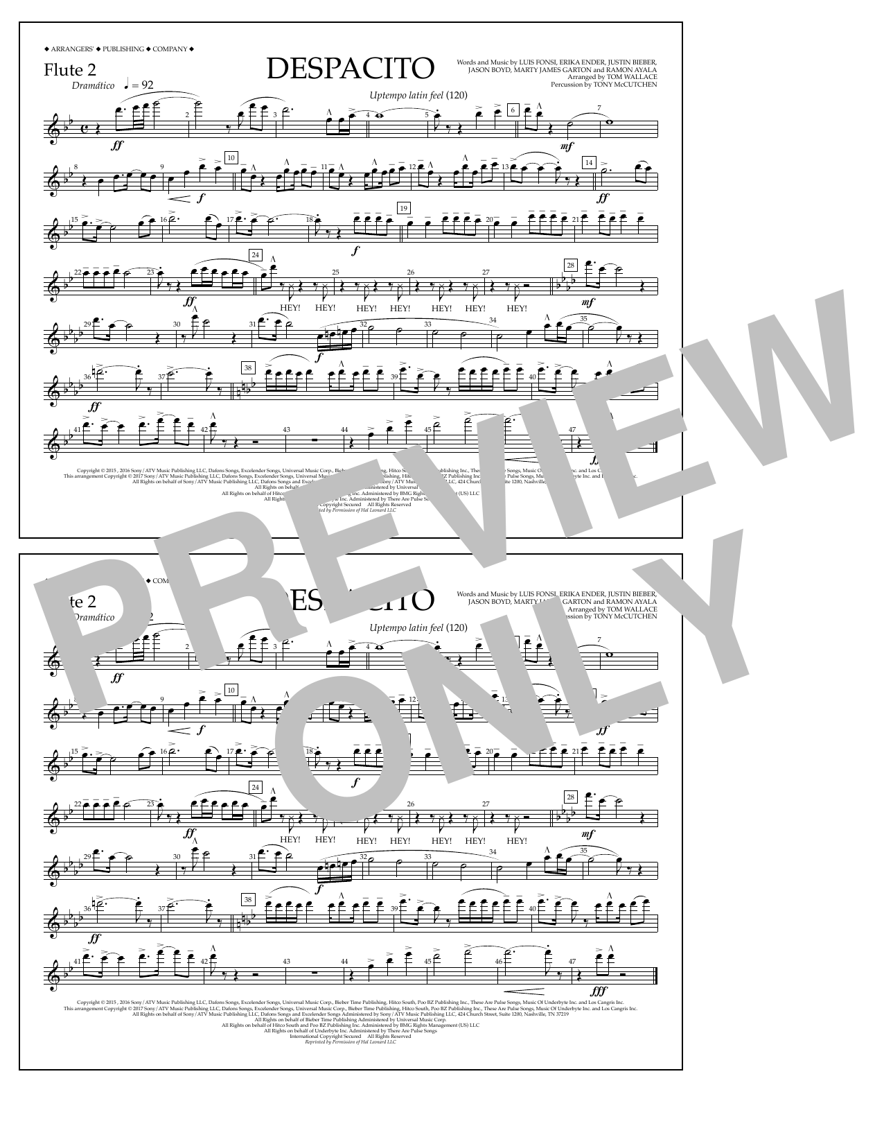 Download or print Luis Fonsi & Daddy Yankee feat. Justin Bieber Despacito (arr. Tom Wallace) - Flute 2 sheet music, chords and digital score arranged for Marching Band. This Pop score includes 1 page(s).