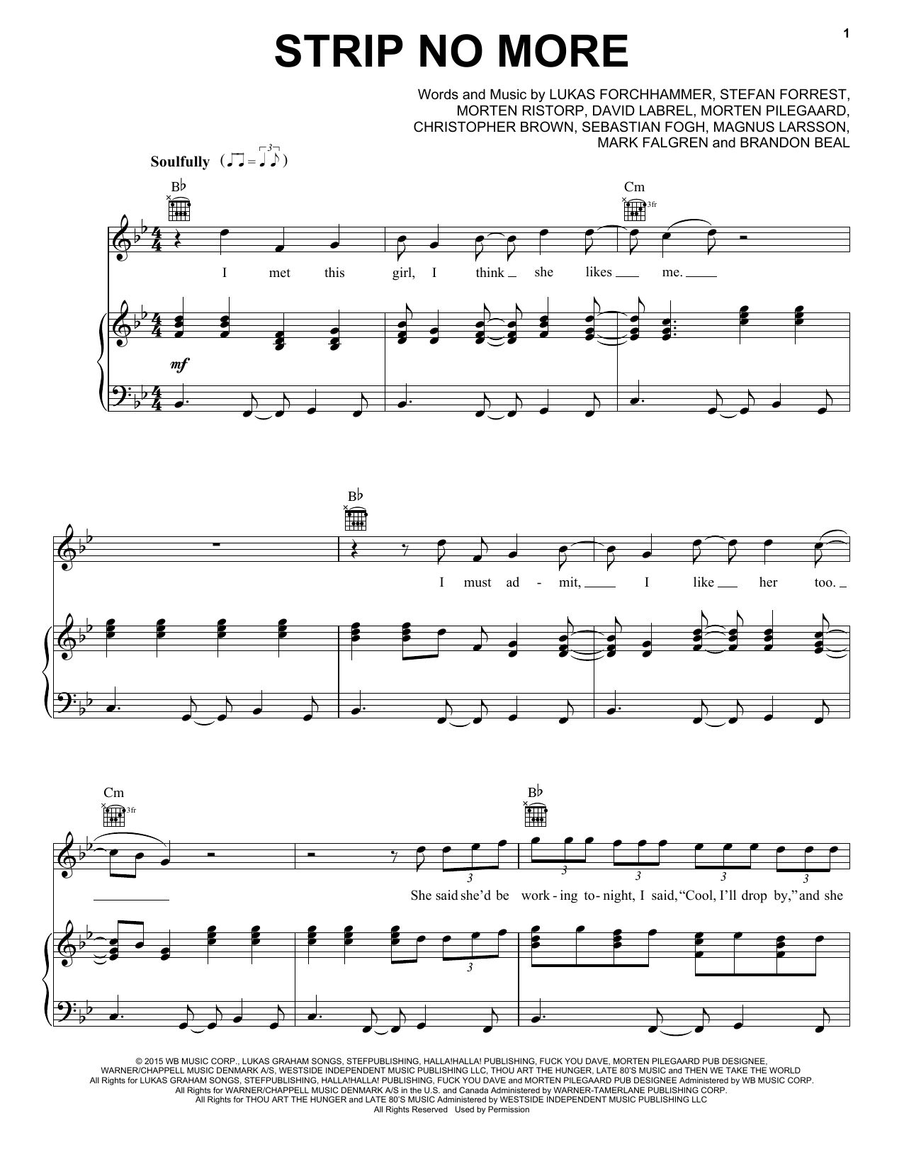 Download or print Lukas Graham Strip No More sheet music, chords and digital score arranged for Piano, Vocal & Guitar Chords (Right-Hand Melody). This Pop score includes 9 page(s).