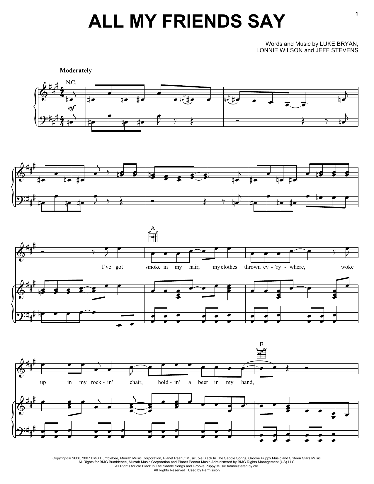 Download or print Luke Bryan All My Friends Say sheet music, chords and digital score arranged for Piano, Vocal & Guitar Chords (Right-Hand Melody). This Country score includes 6 page(s).