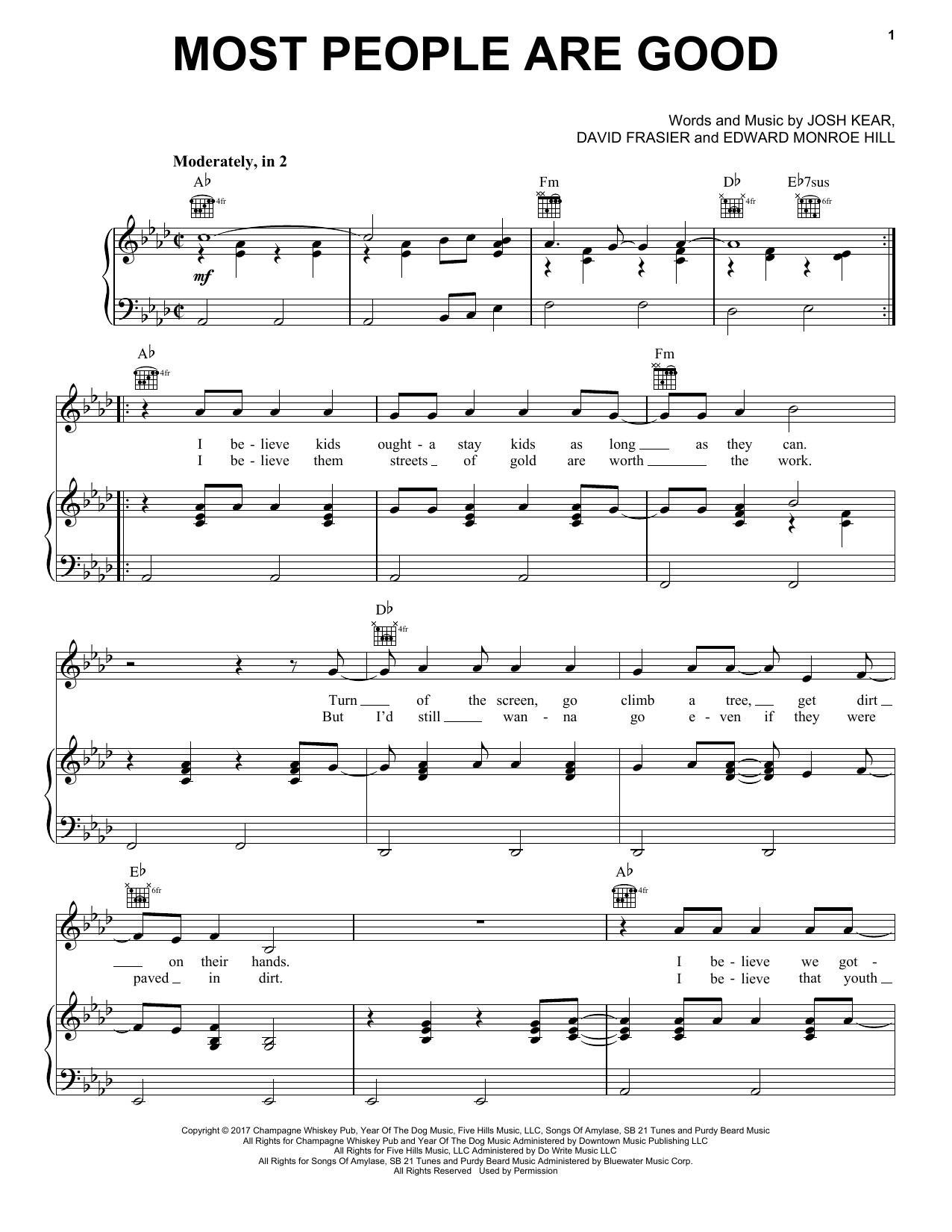 Download or print Luke Bryan Most People Are Good sheet music, chords and digital score arranged for Piano, Vocal & Guitar Chords (Right-Hand Melody). This Country score includes 6 page(s).
