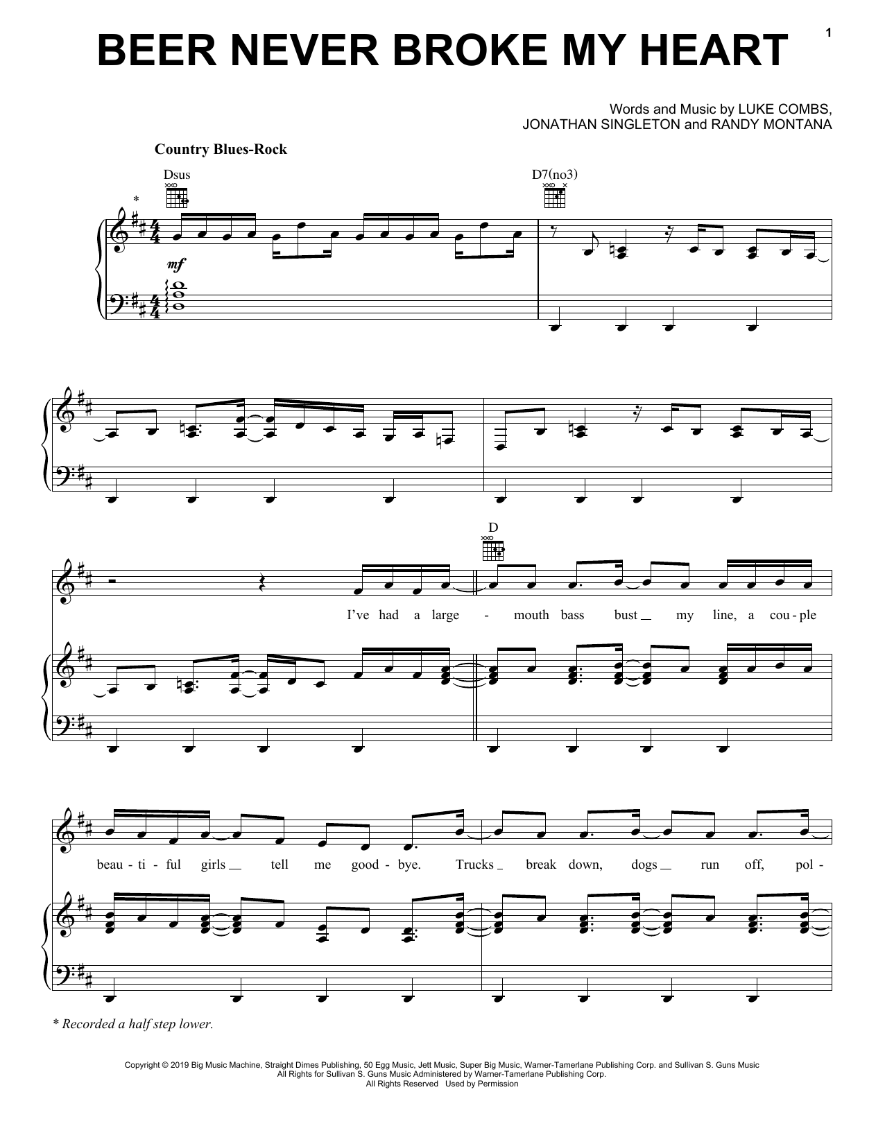 Download or print Luke Combs Beer Never Broke My Heart sheet music, chords and digital score arranged for Guitar Tab. This Pop score includes 9 page(s).