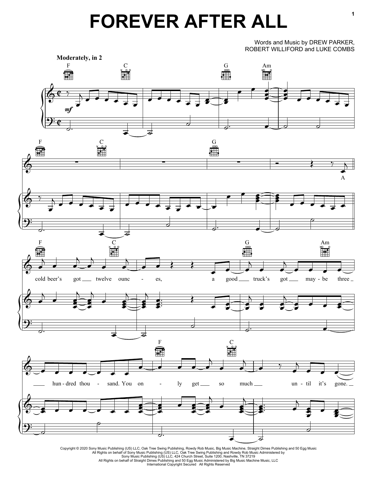 Download or print Luke Combs Forever After All sheet music, chords and digital score arranged for Easy Piano. This Pop score includes 8 page(s).
