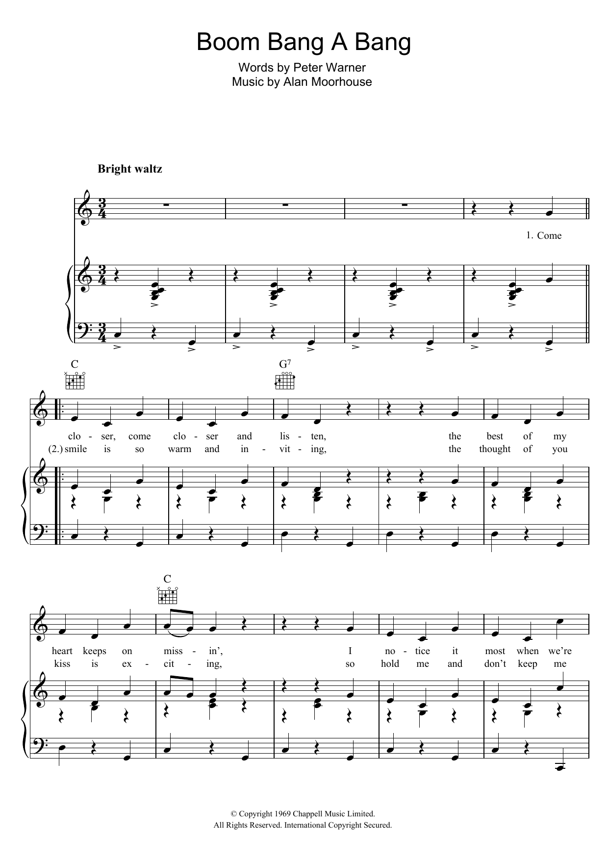 Download or print Lulu Boom Bang A Bang sheet music, chords and digital score arranged for Piano, Vocal & Guitar Chords. This Pop score includes 5 page(s).