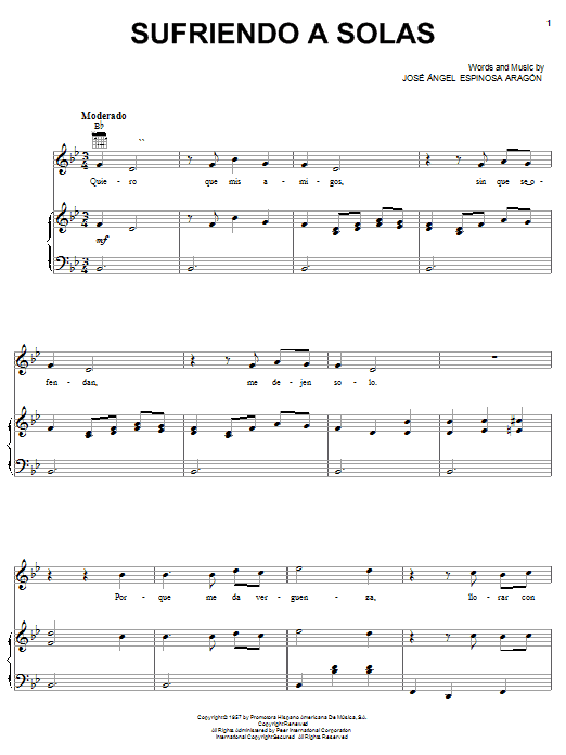 Download or print Lupillo Rivera Sufriendo A Solas sheet music, chords and digital score arranged for Piano, Vocal & Guitar Chords (Right-Hand Melody). This Latin score includes 9 page(s).