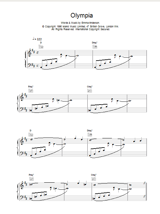 Download or print Lush Olympia sheet music, chords and digital score arranged for Piano, Vocal & Guitar Chords. This Alternative score includes 5 page(s).