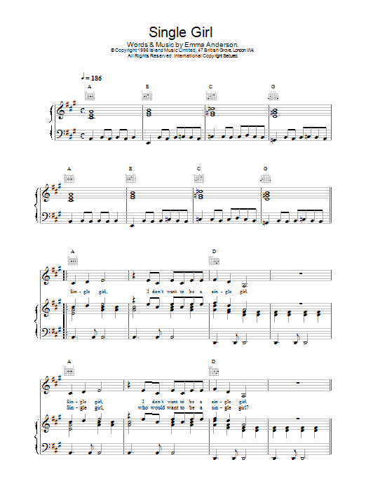 Download or print Lush Single Girl sheet music, chords and digital score arranged for Piano, Vocal & Guitar Chords. This Alternative score includes 5 page(s).