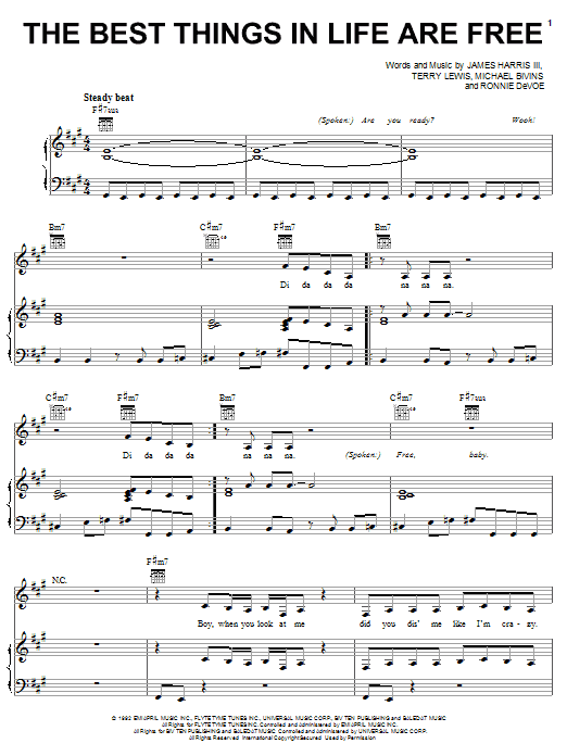 Download or print Luther Vandross & Janet Jackson The Best Things In Life Are Free sheet music, chords and digital score arranged for Piano, Vocal & Guitar Chords (Right-Hand Melody). This Film/TV score includes 9 page(s).