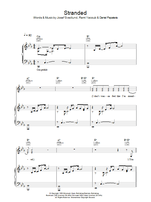 Download or print Lutricia McNeal Stranded sheet music, chords and digital score arranged for Piano Chords/Lyrics. This Pop score includes 2 page(s).