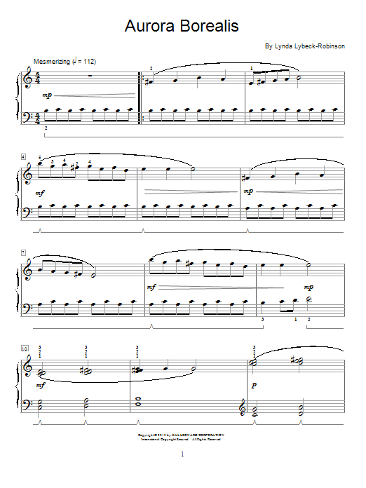 Download or print Lynda Lybeck-Robinson Aurora Borealis sheet music, chords and digital score arranged for Piano Solo. This Instructional score includes 2 page(s).