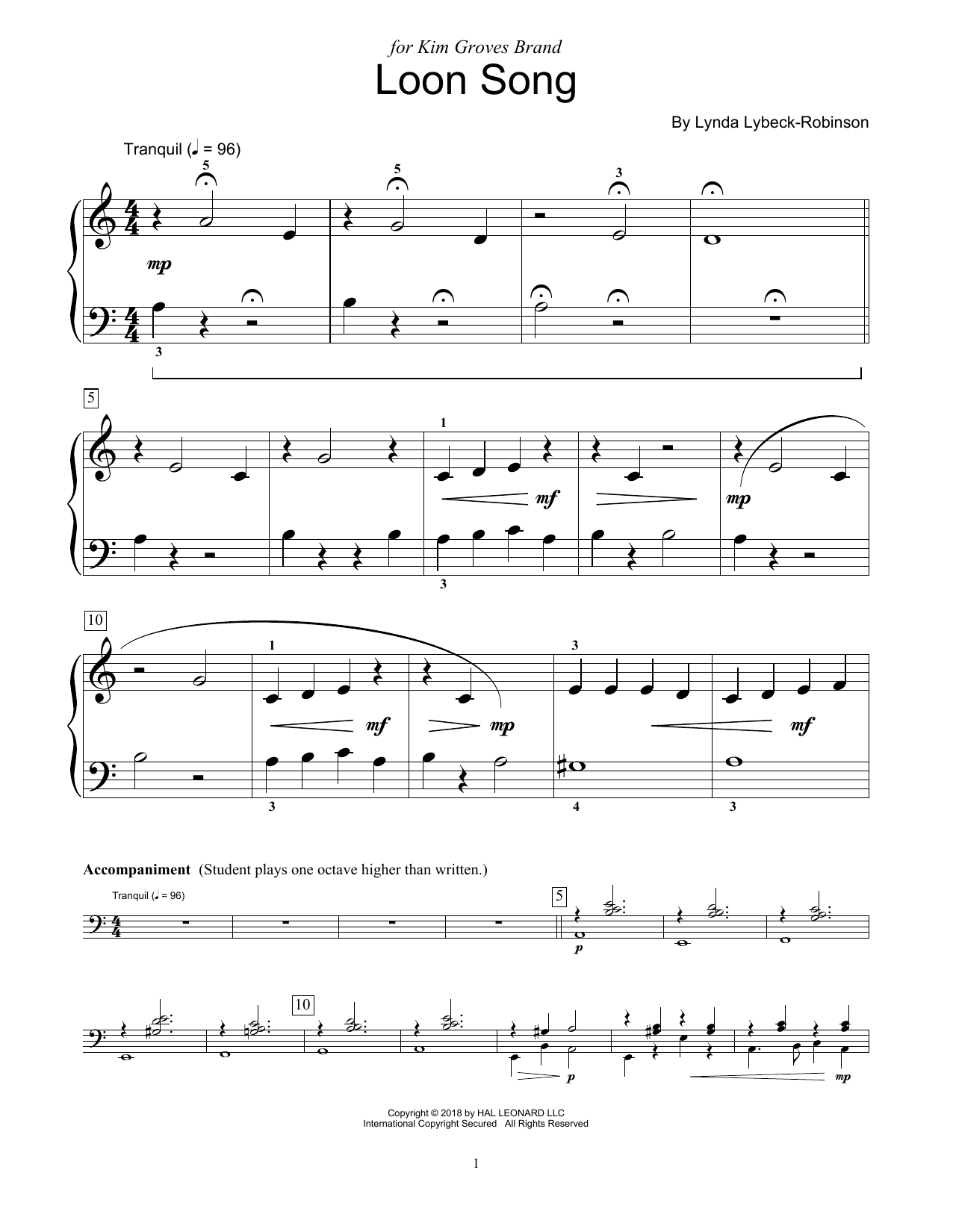 Download or print Lynda Lybeck-Robinson Loon Song sheet music, chords and digital score arranged for Educational Piano. This Instructional score includes 2 page(s).