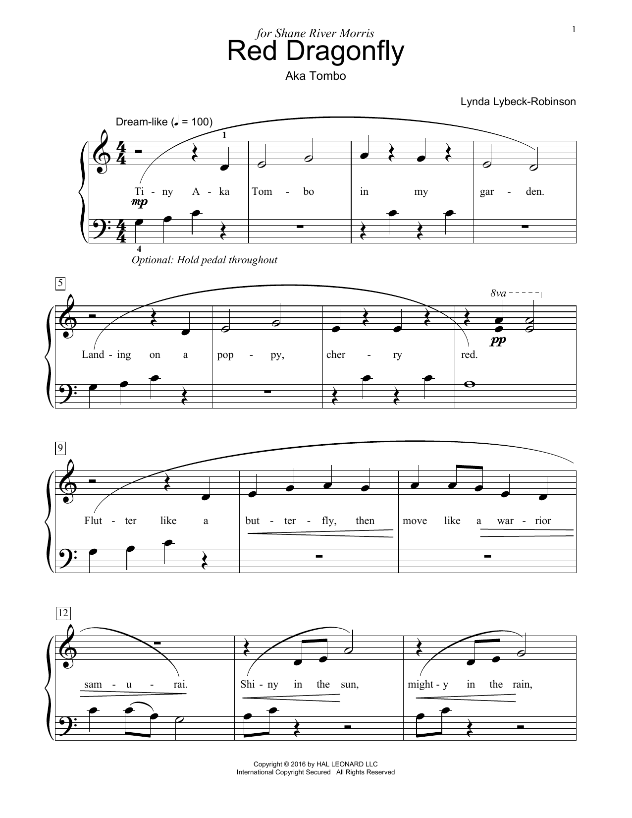 Download or print Lynda Lybeck-Robinson Red Dragonfly sheet music, chords and digital score arranged for Educational Piano. This Pop score includes 3 page(s).