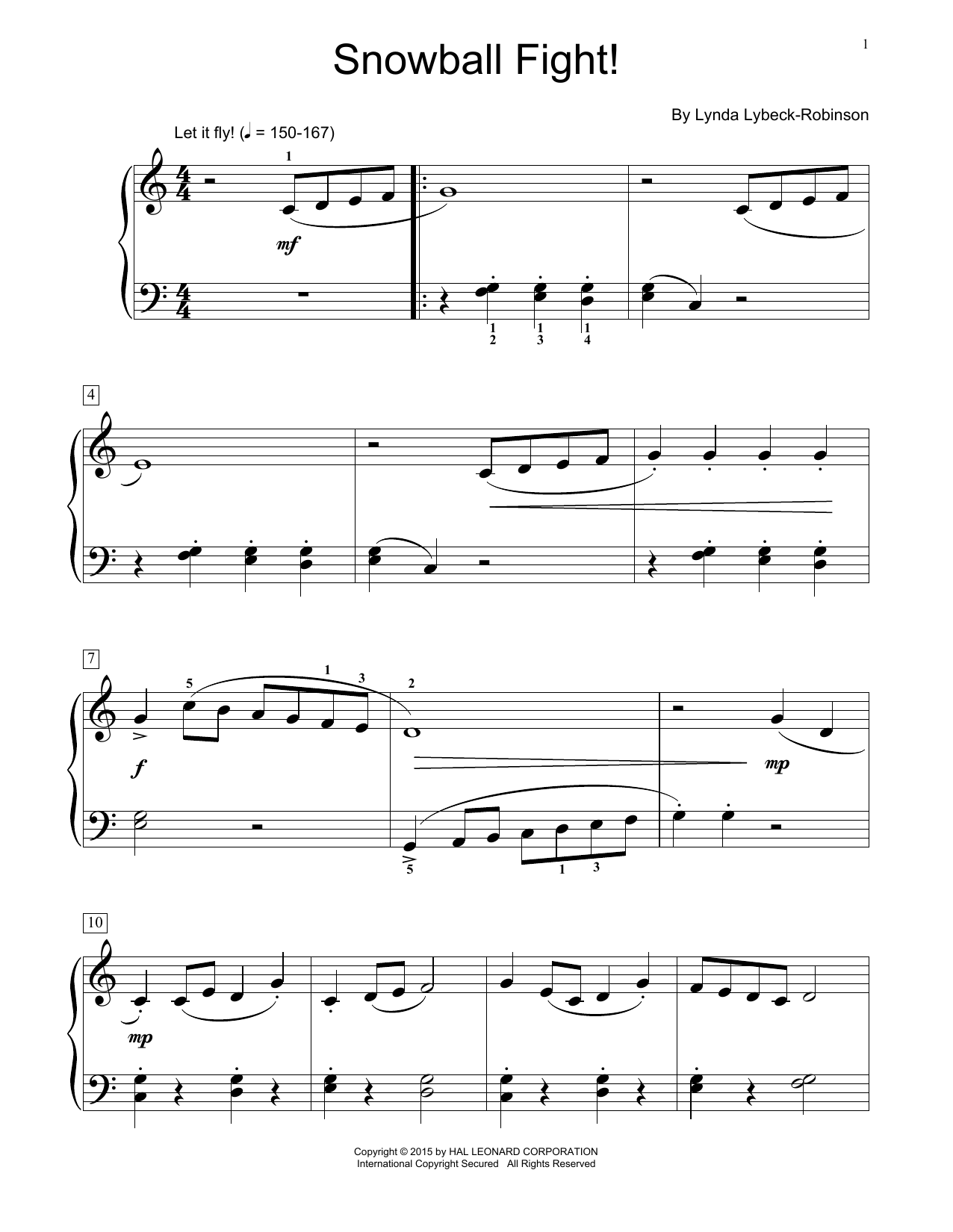 Download or print Lynda Lybeck-Robinson Snowball Fight! sheet music, chords and digital score arranged for Educational Piano. This Children score includes 2 page(s).