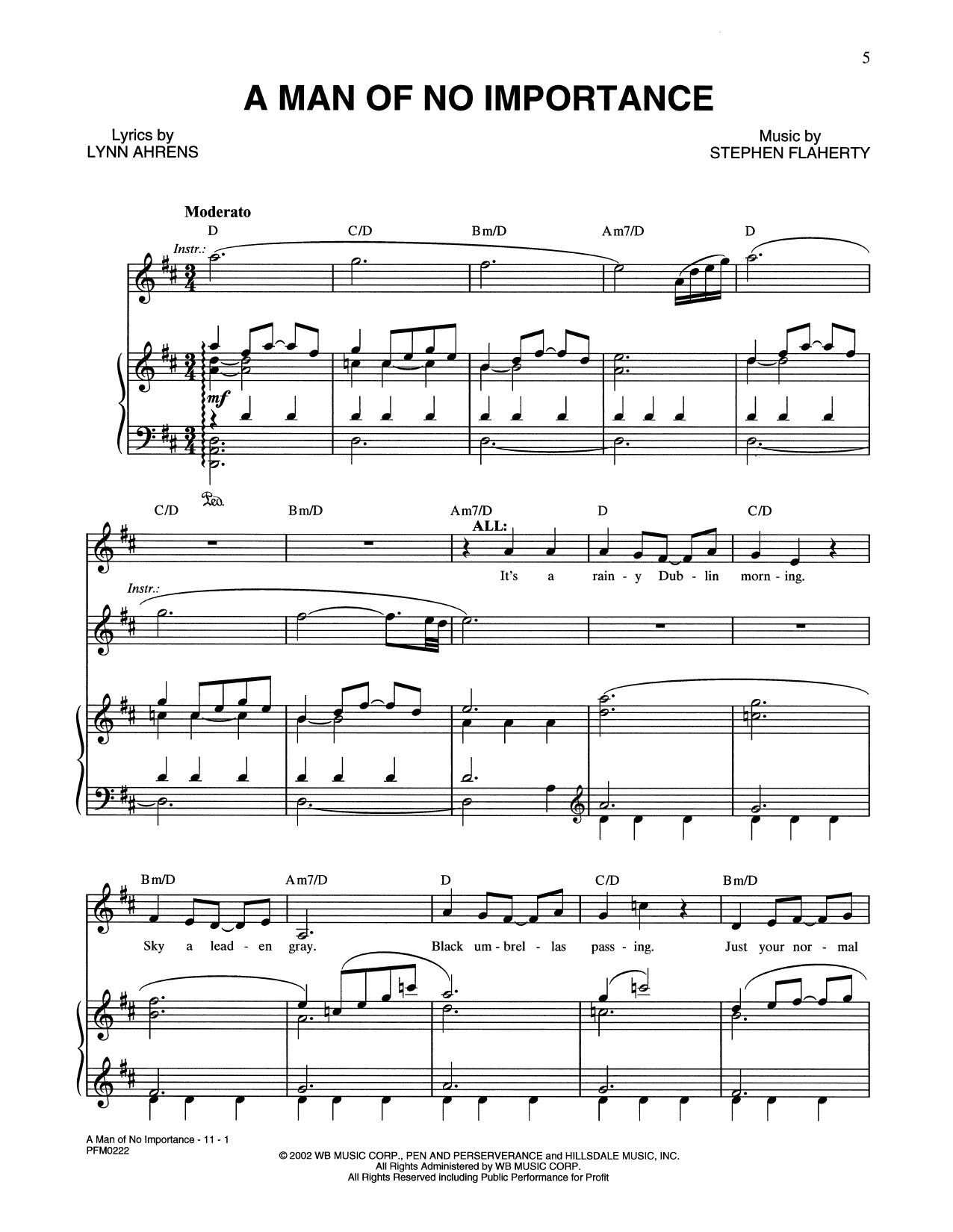 Download or print Lynn Ahrens and Stephen Flaherty A Man Of No Importance (from A Man Of No Importance: A New Musical) sheet music, chords and digital score arranged for Piano & Vocal. This Musical/Show score includes 11 page(s).