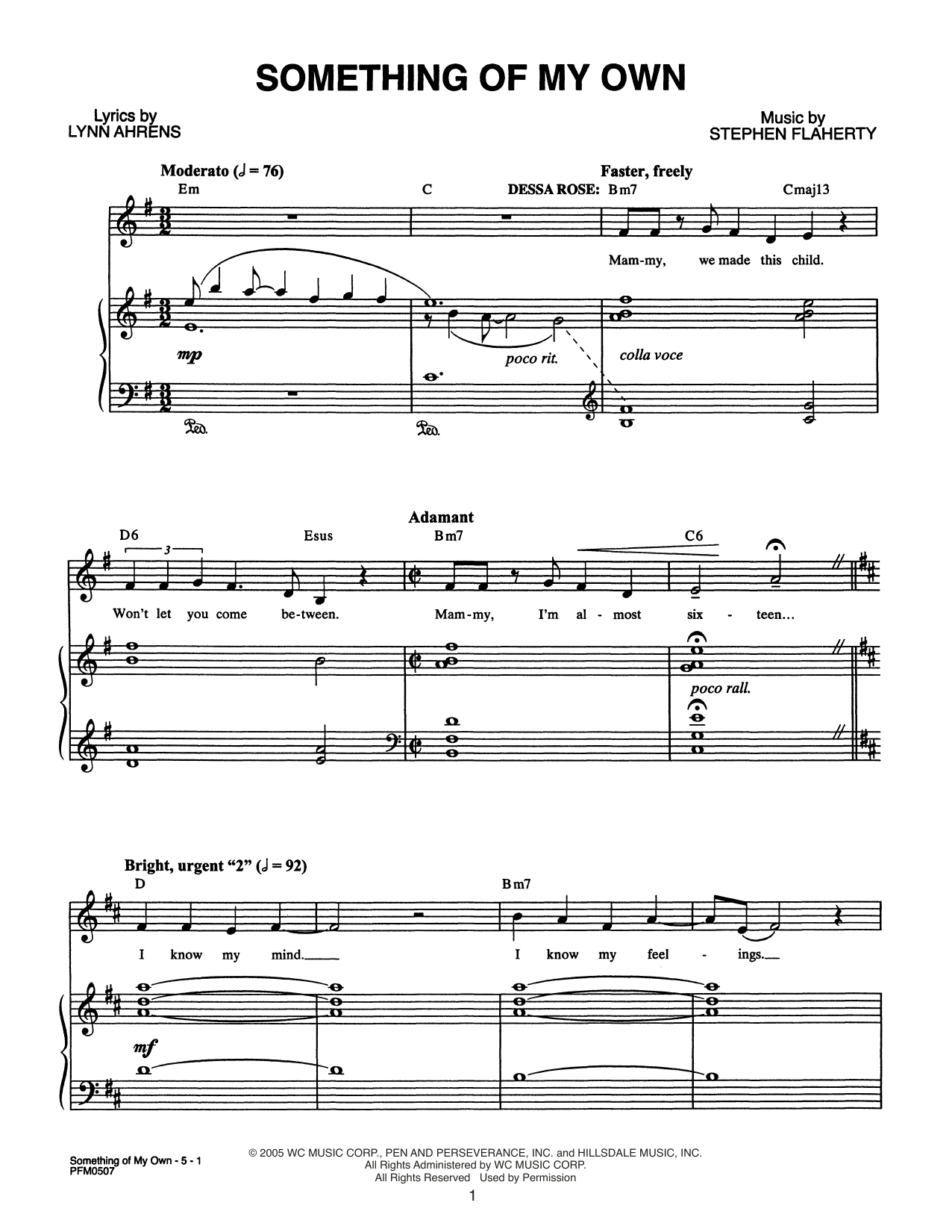 Download or print Lynn Ahrens and Stephen Flaherty Something Of My Own (from Dessa Rose: A New Musical) sheet music, chords and digital score arranged for Piano & Vocal. This Broadway score includes 5 page(s).