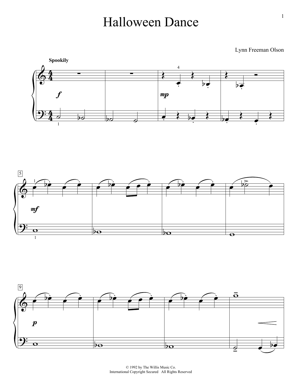 Download or print Lynn Freeman Olson Halloween Dance sheet music, chords and digital score arranged for Educational Piano. This Instructional score includes 2 page(s).
