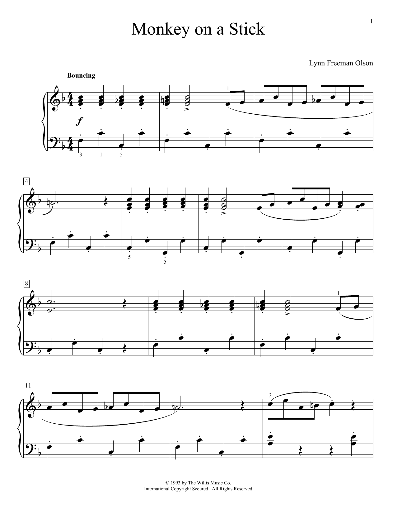 Download or print Lynn Freeman Olson Monkey On A Stick sheet music, chords and digital score arranged for Educational Piano. This Instructional score includes 2 page(s).